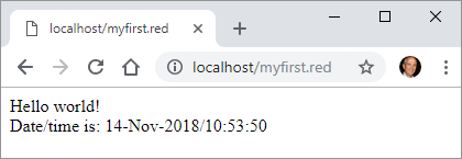 Now if your server is running (port 80) and you type localhost/myfirst.red in your browser's address bar, you get: