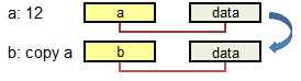 Assigns a copy of the data to a new word.
