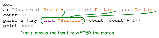 parse a [any [thru "Britain" (count: count + 1)]]