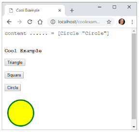 Create and save the following RSP script as coolexample.rsp in Cheyenne's www folder. Open localhost/coolexample.rsp on your browser and click a button. If your browser support HTML's SVG (most do), a corresponding image should show under it's button.
